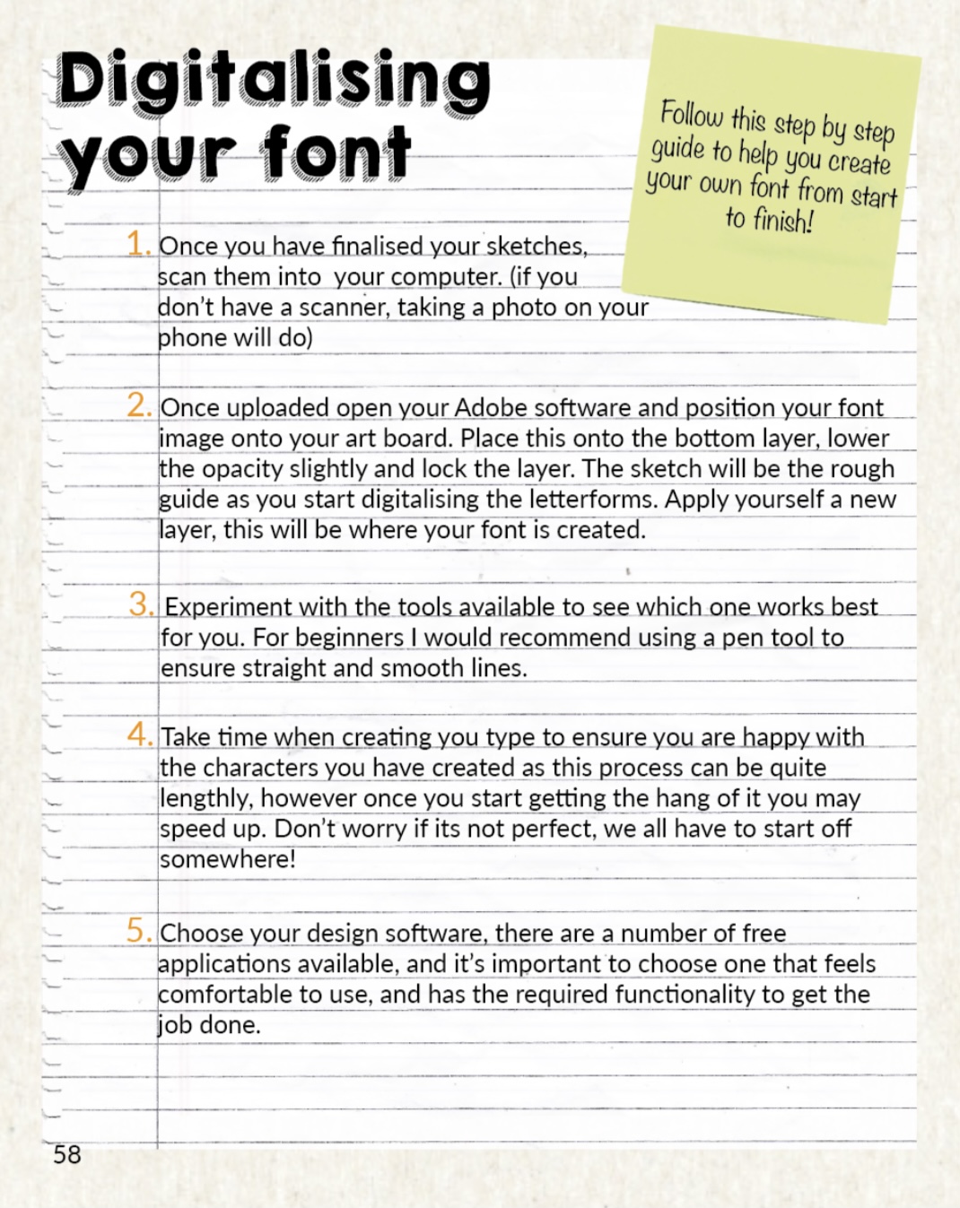 - Digitalising – Explain how to upload font onto the computer for the final step.
