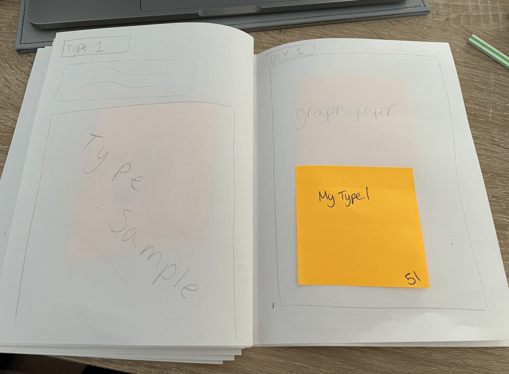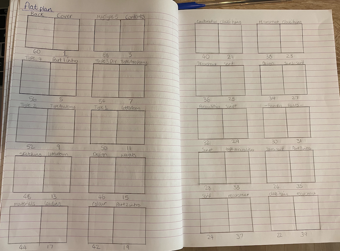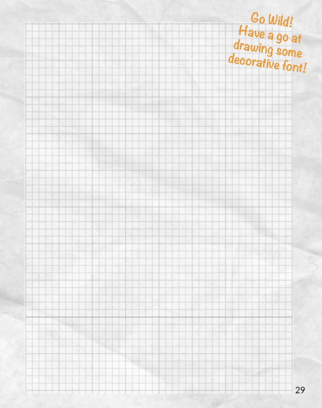 - DIY Pages – Thinking of scanning in graph paper so the reader can draw straight into the book. I’m Currently unsure if I’m going to place these one after another during the type sample pages or to include a section at the back of the book? This will be something I decide on during my flat plan.