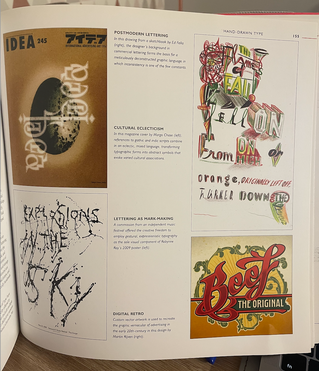 Book Inspiration – I came across this book ‘Theory of type design by Gerard Unger’ online, I like the layout of the pages with it being more example based which is what I am aiming to do, along with the double page typographic art which breaks up the book giving inspiration and additional interest to the reader.