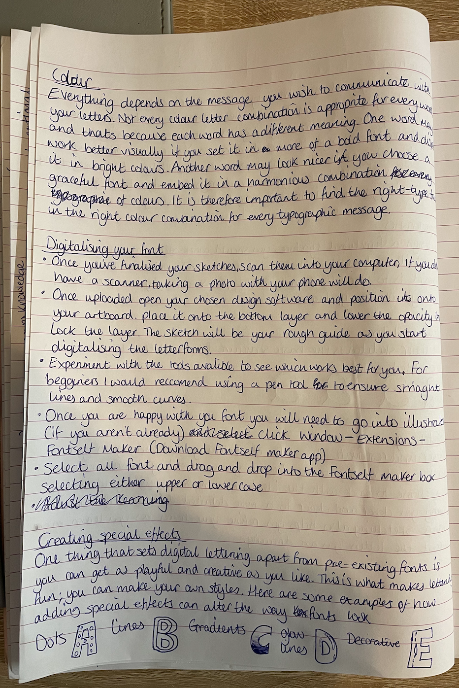 I started off with the website above, it’s very structured with a step by step guide in how to start creating your own typeface without making it sound too complex. https://www.creativebloq.com/typography/design-your-own-typeface-8133919.