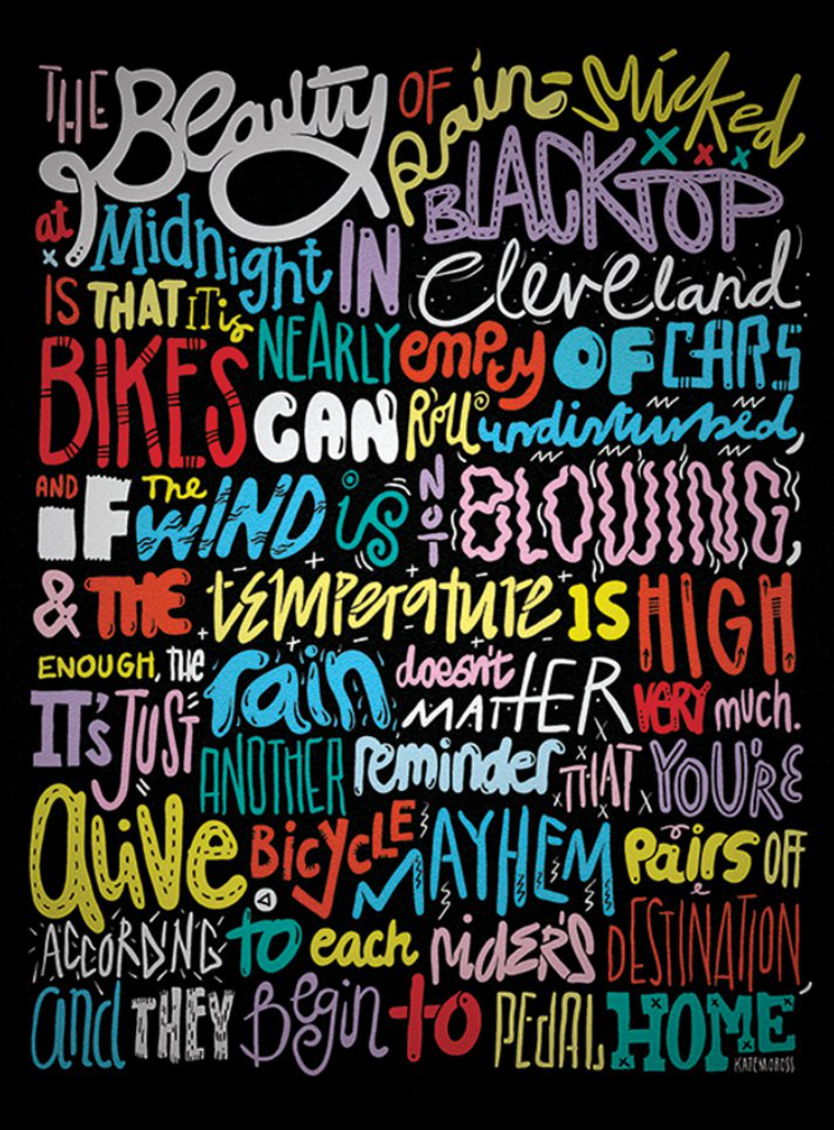 I’m really drawn to Moross’ doodle like typography with use of bright and vibrant colours, it makes her work iconic and eye catching. I love her style!