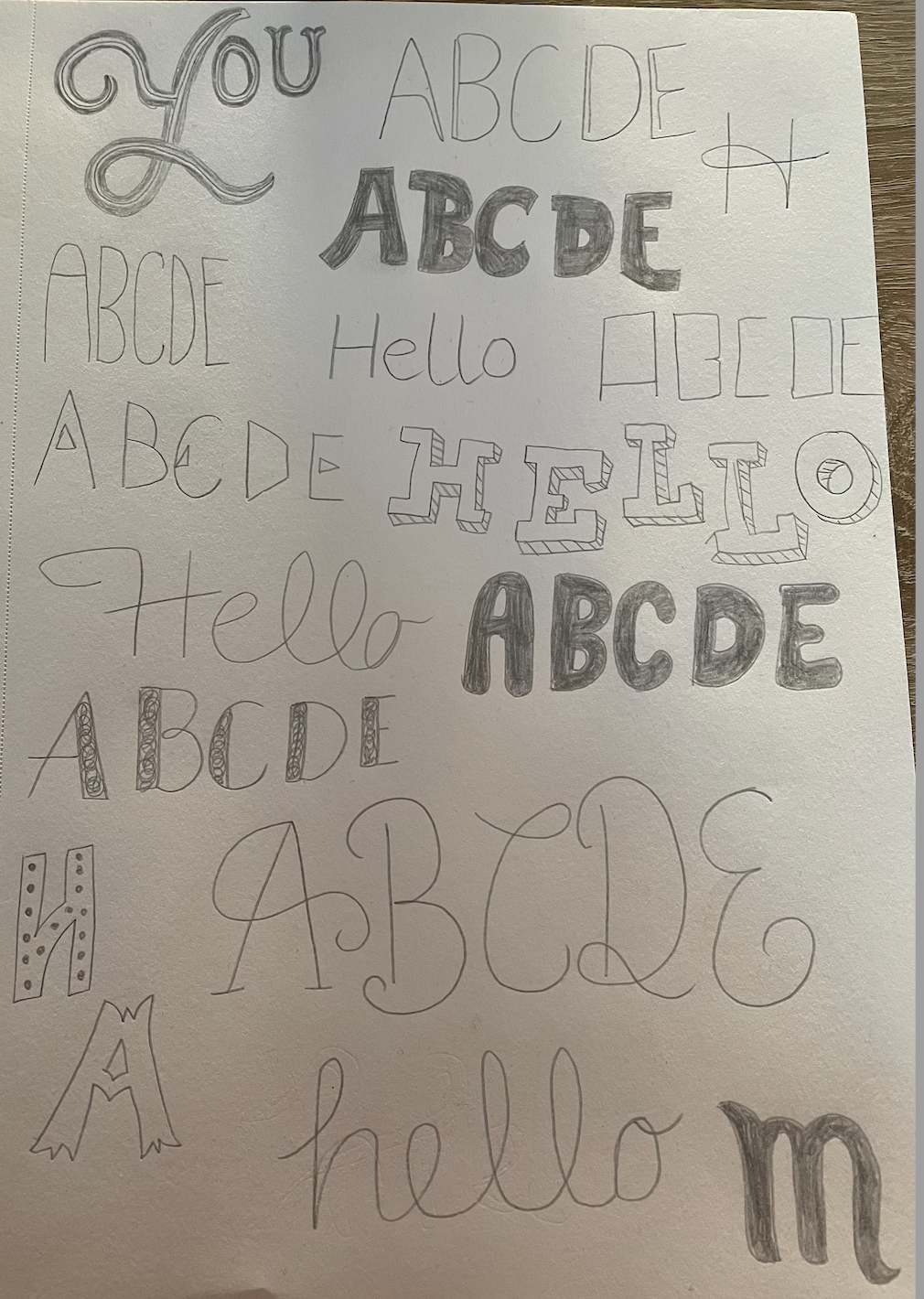 I started off sketching out some type designs, Im aiming at creating more of a decorative typeface to begin with as it seems slightly less ‘precise’ and more relaxed. I am also going to have a go at doodling on my iPad using Procreate to see what effects I can achieve with the different brushes available.