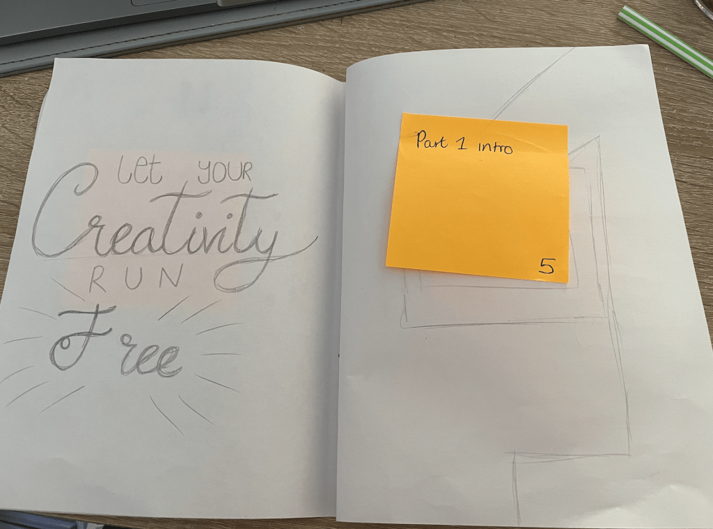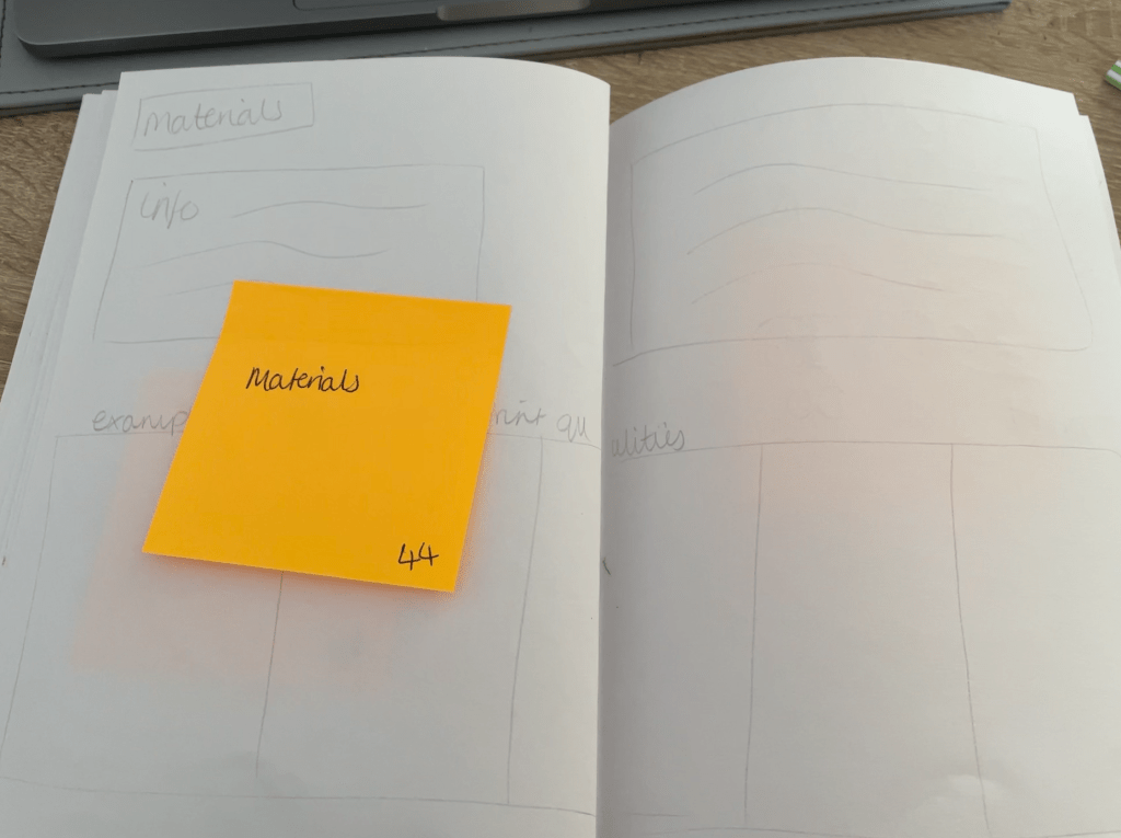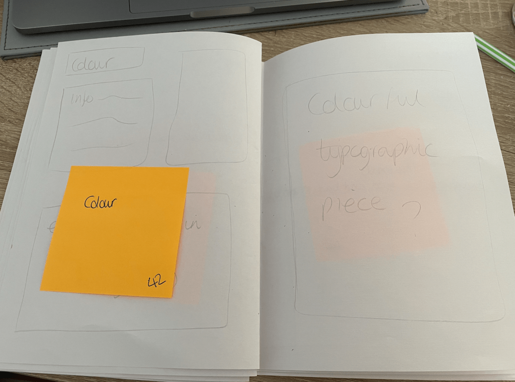 To make use of the paper I folded during the mockup to help with my flat plan I have decided to use this to create rough sketches deciding were things will be placed and the layout I will create. This way I will be able to see what works and what doesn’t within the format of my book. This is going to be incredibly useful during the designing and create stage knowing which pages marry up with each other.