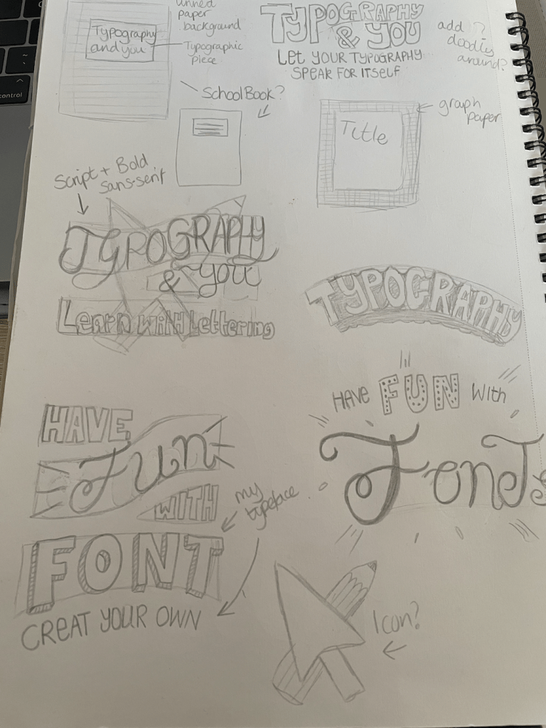 Having decided the title to my book I feel I can move onto the designing process; The title I have chosen is ‘Have fun with typography’ with sub title to be decided between ‘Create your own’, ‘Let your typography speak for itself’, or possibly ‘Learn with lettering’.