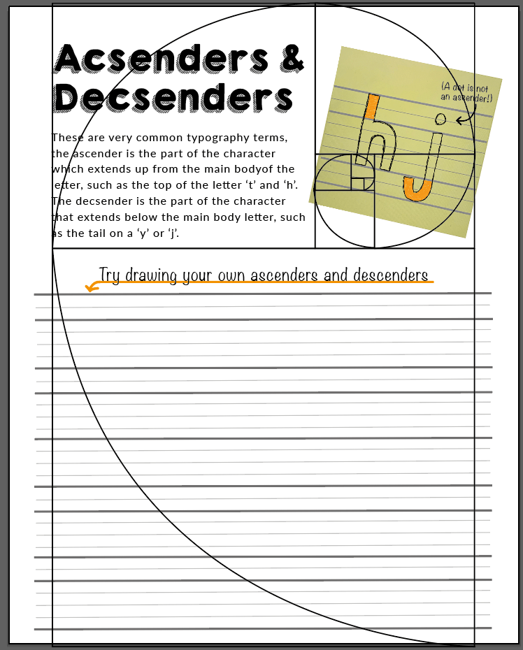 - What is the flow of the content, would you write articles or create imagery or both? – At the moment I plan to produce a book on typography focusing on letterforms, I would like the content to build up the knowledge of the reader so by the end of the book they will feel confident enough at attempting to design their own font. I plan on using short informative articles along with imagery of both illustration and sketch.